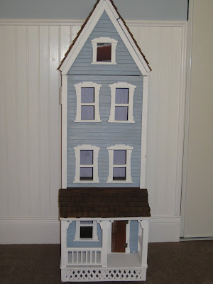 I gave myself a little project this weekend & painted the trim of my dollhouse. So, the first picture of the dollhouse is a before pic, and the 2nd picture is after (sorry some of the pics are in a funky order). The "rooms" of the dollhouse will be shelves for their books, for now. I posted about it before, but the dollhouse was built for me when I was a little girl, by my Grandpa Tom, who was like a 2nd Dad to me. So, obviously it holds a really special place in my heart. :)